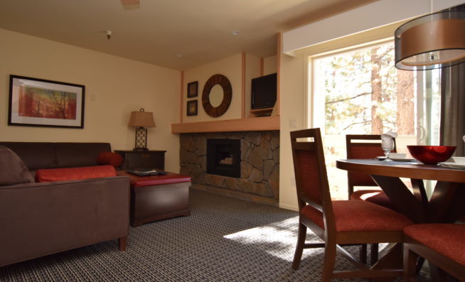 The Lodge at Kingsbury Crossing is your “home away from home” with well appointed suites, partial kitchens, and cozy fireplaces.
